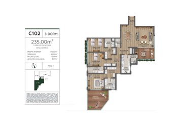 Amplio 3 dormitorios 176 metros internos y 235 metros totales. Ambientes amplios con las más finas terminaciones, iluminación natural y detalles pensados para obtener la disposición más eficiente en términos de espacio y prestaciones.. Lujo y comodidad de un hotel 5 estrellas.
