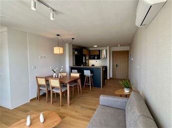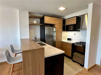 Cuenta con un amplio living-comedor con salida al balcon. Cocina integrada equipada con muebles aéreos, bajo mesada, barra desayunadora, horno, anafe y campana extractora. Dormitorio de buen tamaño con gran placard con mucho espacio de guardado, y grandes ventanales. Baño completo muy cómodo y moderno con placard, mampara de cristal, espejo y calefón. Calefacción por losa radiante eléctrica individual y Aire Acondicionados en todos los ambientes.