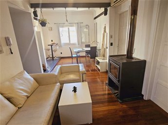 * Living comedor luminoso con estufa a leña de alto rendimiento.